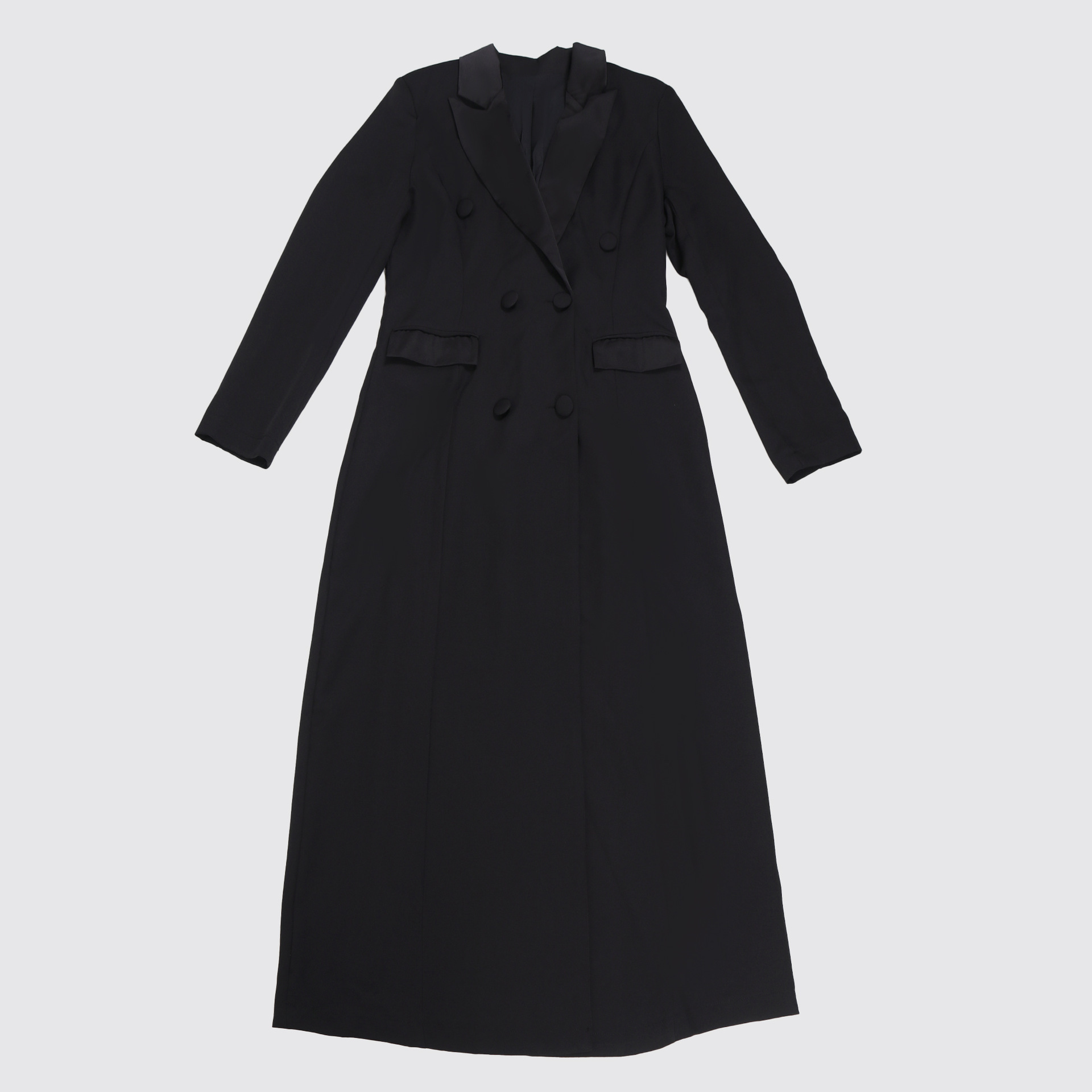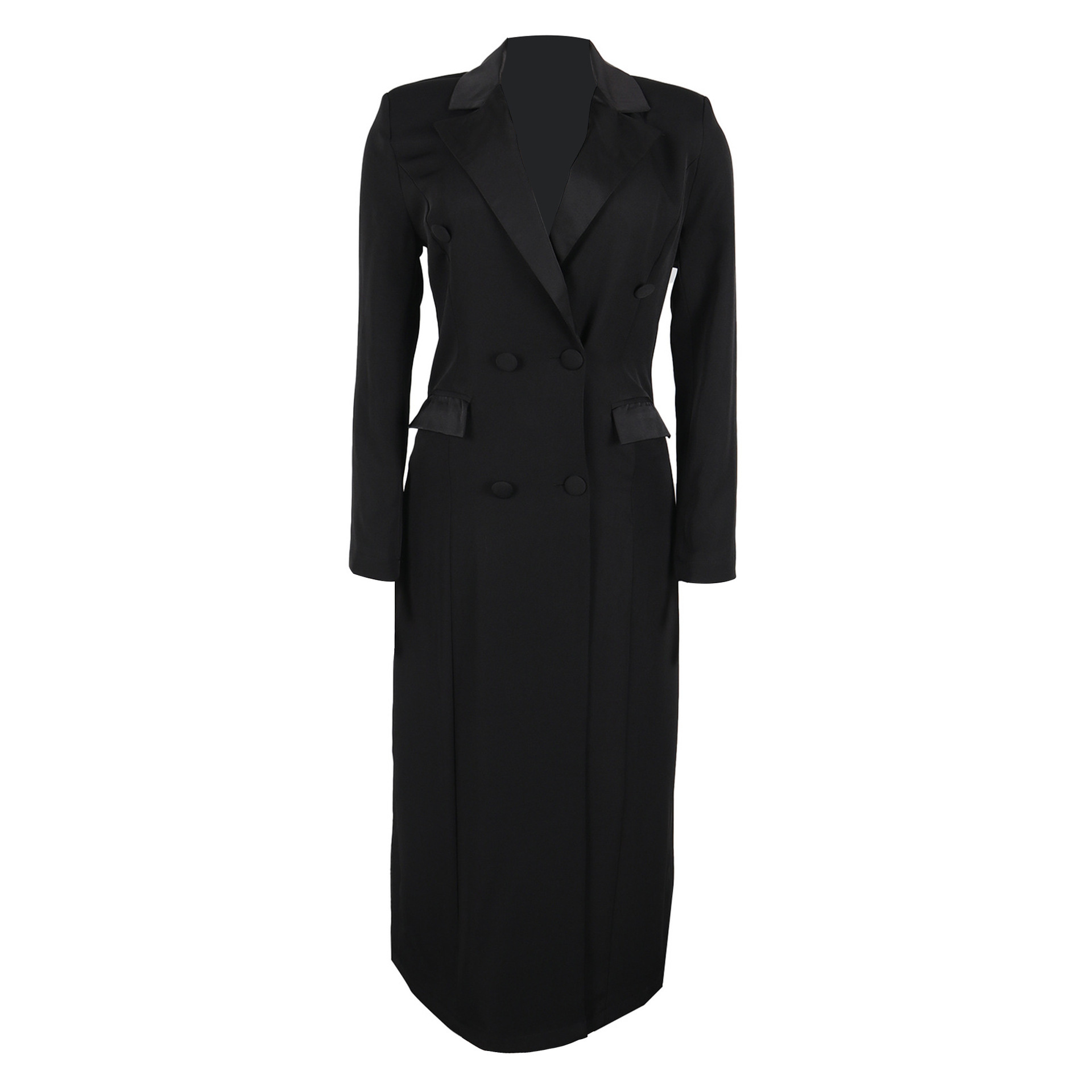 Sexy Elegant Long Blazer Dress With A Notched Collar And A Fitted Waist